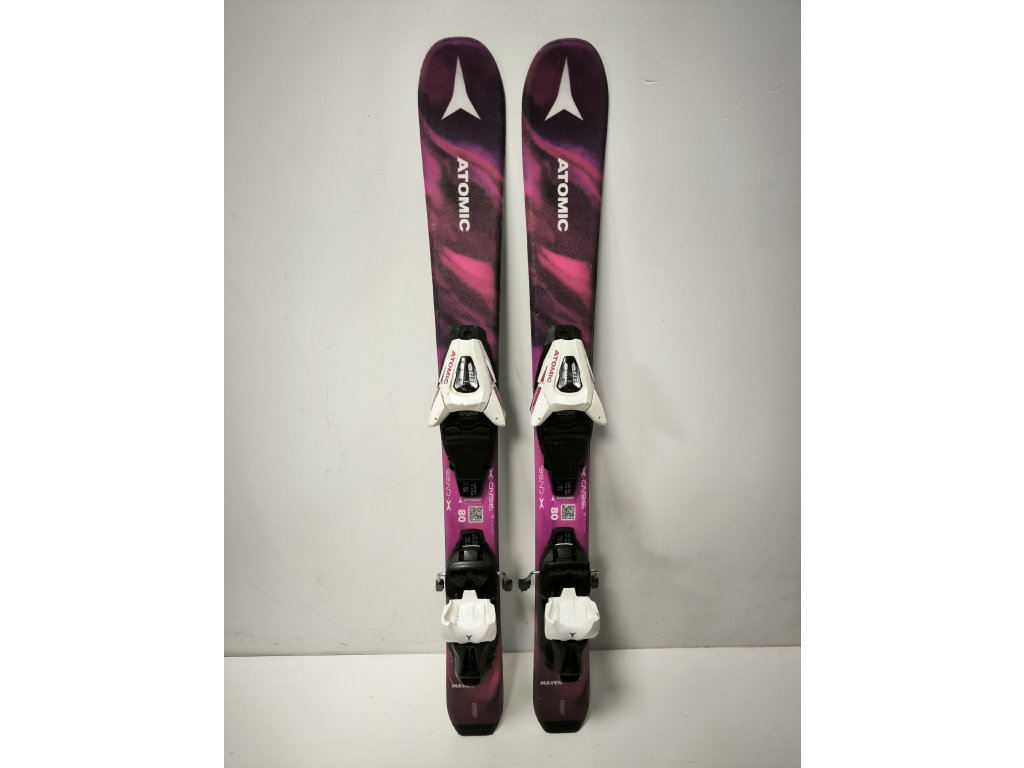 Použité dětské lyže Atomic pro začátečníky i pokročilé. Svou délkou 80cm jsou vhodné pro děti vysoké přibližně 100cm.