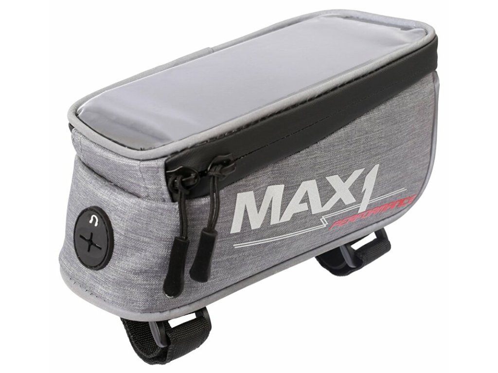 Kompaktní brašna MAX1 na horní rámovou trubku s kapsou uzpůsobenou pro mobilní telefon.