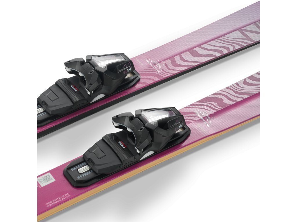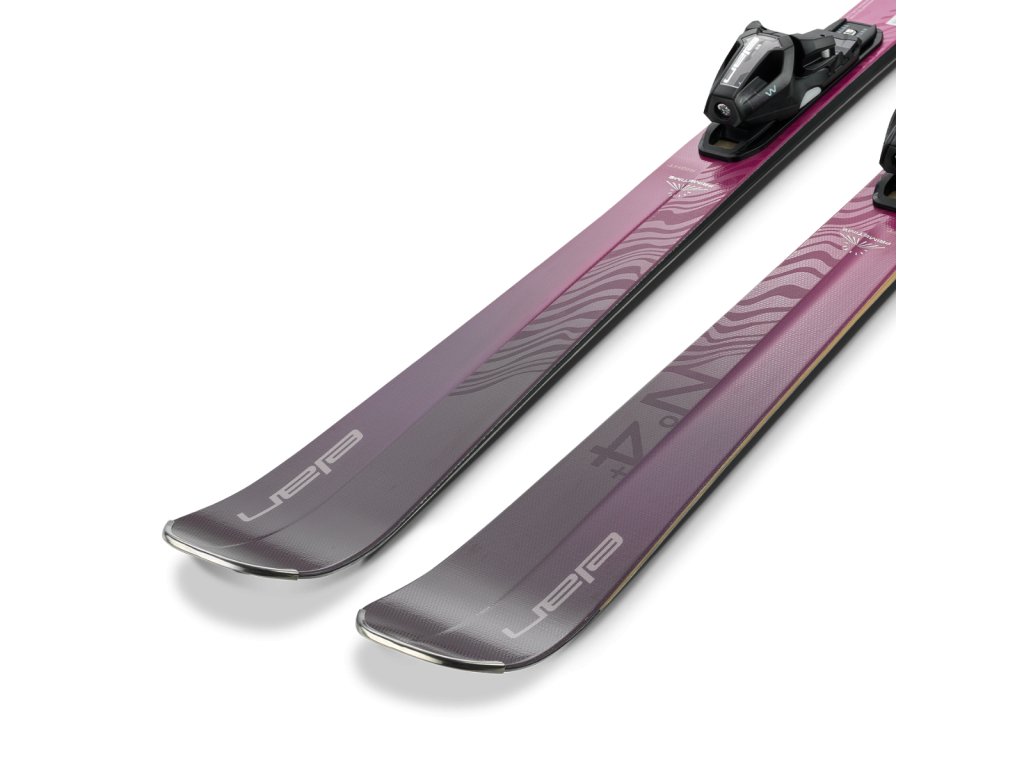 Lyže Elan Primetime N°4+ W jsou dodávány s podložkou SX a s vázáním ELX 11.0 GW Shift, nastavit lze rozpětí délky podrážky boty 239 - 363 mm