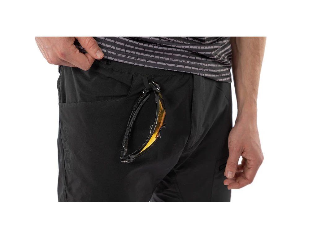 Etape Freedom 3.0 nabídnou tři kapsy — dvě otevřené boční a jednu stehenní na zip, takže si s sebou můžete vzít drobnosti, které potřebujete během jízdy. Nechybí ani poutko na brýle či rukavice, což oceníte zejména v terénu nebo při zastávkách.