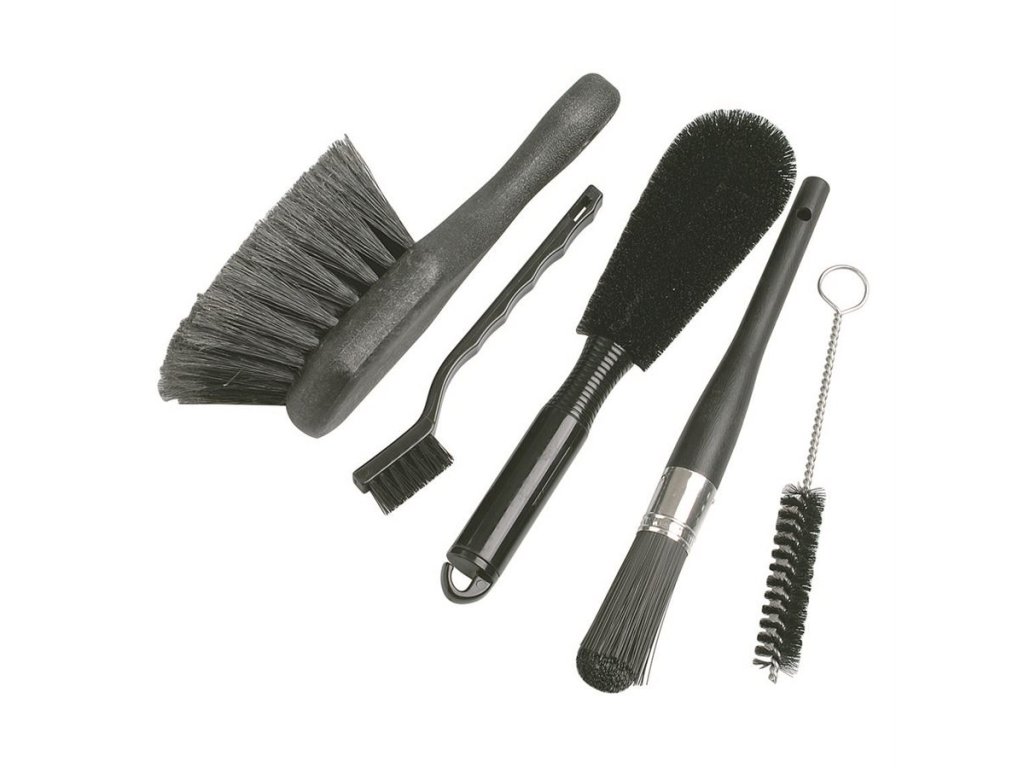 Součástí balení je pět specializovaných kartáčů, které si poradí s blátem, prachem i silniční špínou na všech komponentech. Tyto kartáče využívají jak domácí cyklisté, tak profesionální mechanici, kteří oceňují jejich efektivitu a variabilitu.