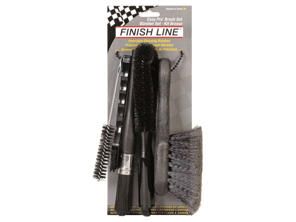 Finish Line Easy Pro Brush Set je kompletní pětidílná sada kvalitních kartáčů navržených pro snadné, rychlé a důkladné čištění celého kola. Díky různým tvarům a tvrdostem štětin se dostaneš do všech těžko přístupných míst – od rámu přes kazetu až po přehazovačku.