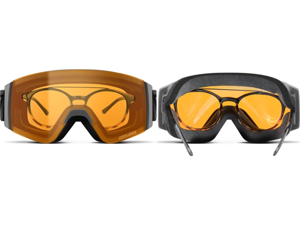 Bezrámové lyžařské brýle Salice 105 s prémiovou čočkou RW od firmy ZEISS se slunečním filtrem S1. Díky zrcadlové vrstvě čočka zlepšuje kontrast a čitelnost terénu, redukuje a filtruje světlo z povrchů jako vodní hladina, sníh či led. Dvojité sklo s úpravou proti poškrábání a zamlžování. Nabízejí 100% ochranu proti UV záření a pohodlné usazení díky trojité sametové pěně a nastavitelnému elastickému pásku. Kompatibilní s helmami Salice, stejně jako s většinou helem jiných značek na trhu i s dioptrickými brýlemi (OTG).