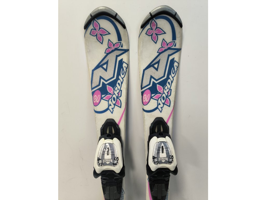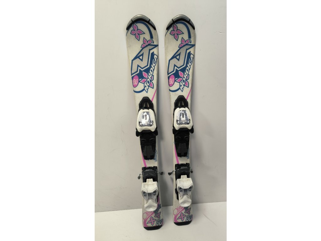 Použité dětské lyže Nordica pro začátečníky i pokročilé. Svou délkou 80cm jsou vhodné pro děti vysoké přibližně 100cm.
