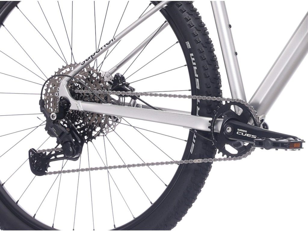 Moderní pohon Shimano CUES nabízí jednoduché a spolehlivé řazení s dostatečně širokým rozsahem převodů. Přehazovačka se stabilizátorem řetězu zajišťuje klidný chod a menší riziko spadnutí řetězu v terénu.