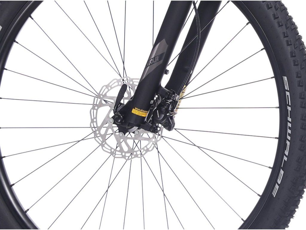 Hydraulické brzdy Shimano poskytují silný a dobře dávkovatelný brzdný výkon za každého počasí. Zvyšují bezpečnost a kontrolu při sjezdech i při náhlém brzdění.