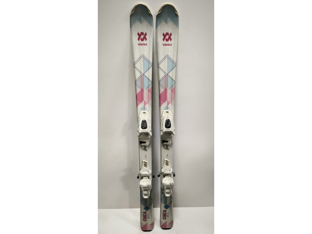 Použité dětské lyže Völkl Chica v délce 120cm. Svou délkou jsou vhodné pro děti vysoké přibližně 140cm.